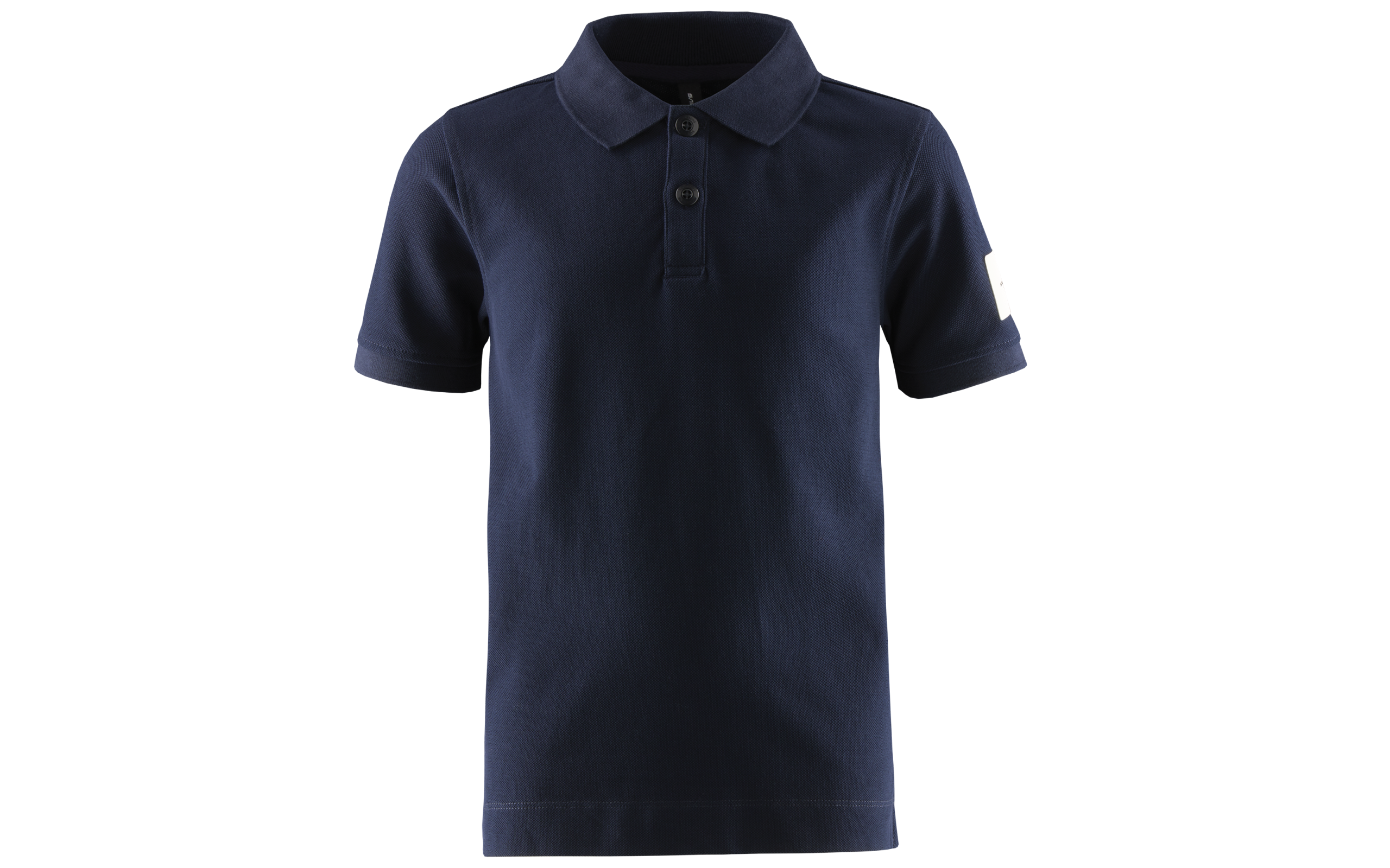 Junior Wind Polo, made from soft cotton for a comfortable fit. The polo shirt has a flat-knit collar and cuffs, and a slit at the bottom. Button closure at the front with three buttons. Designed with a patch logo on the sleeve and a block logo at the back yoke.