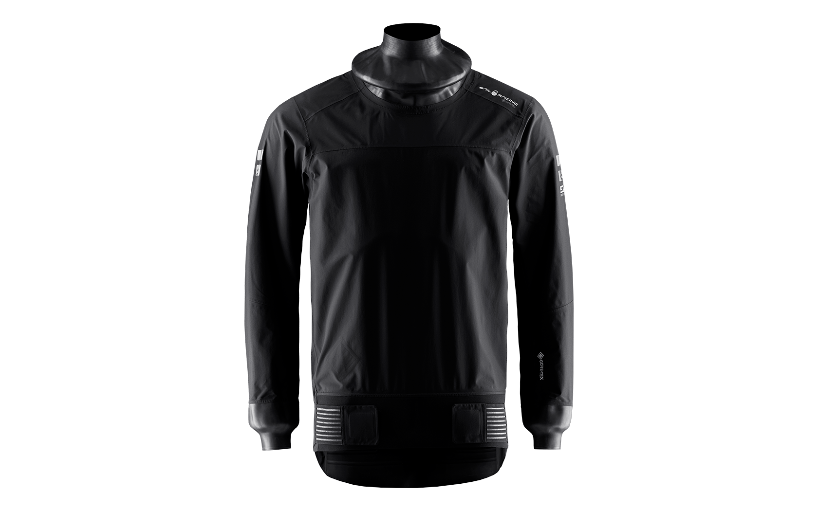 To provide complete protection against water intrusion, the spray top is constructed with tapered latex seals at the neck and cuffs, which can be adjusted according to the user’s preferences. The lower hem of the spray top is made of neoprene and is adjustable with medical tape and Velcro closure, reinforced with Bemis® tape, for comfort and a customized fit that prevents water penetration. Reflective Sail Racing prints on the sleeves increase visibility in the dark. Designed with a printed 50KTS logo on the left arm, Sail Racing and GORE-TEX® prints on the left shoulder, and a printed GORE-TEX® logo at the bottom of the left sleeve. Molded graphic print on the back and a printed block logo at the neck.