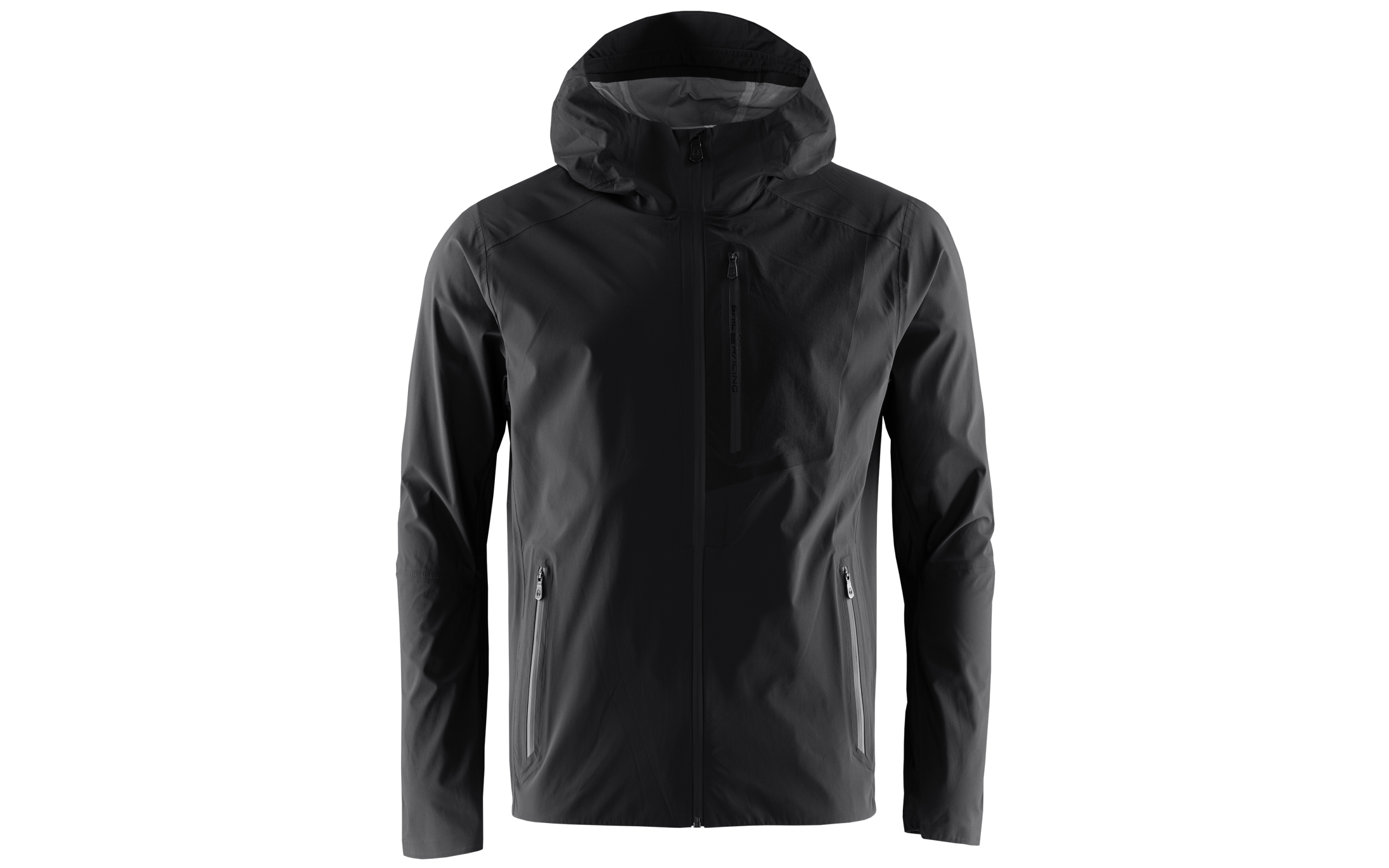 The jacket features elastic cuffs and two drawcords on the inside of the lower hem, allowing for an adjustable fit to protect against wind and water intrusion. The spacious hood is equipped with two-way adjustment using micro stoppers and has a welded edge for optimal protection. The front zipper is a water-repellent SHZ® zipper, complemented by an inner button placket. For storage, the jacket includes two hand pockets and a chest pocket with water-repellent SHZ® zippers. The chest pocket is made from a contrast nylon stretch fabric for enhanced mobility. Therefore, we recommend storing delicate items in one of the waist pockets.