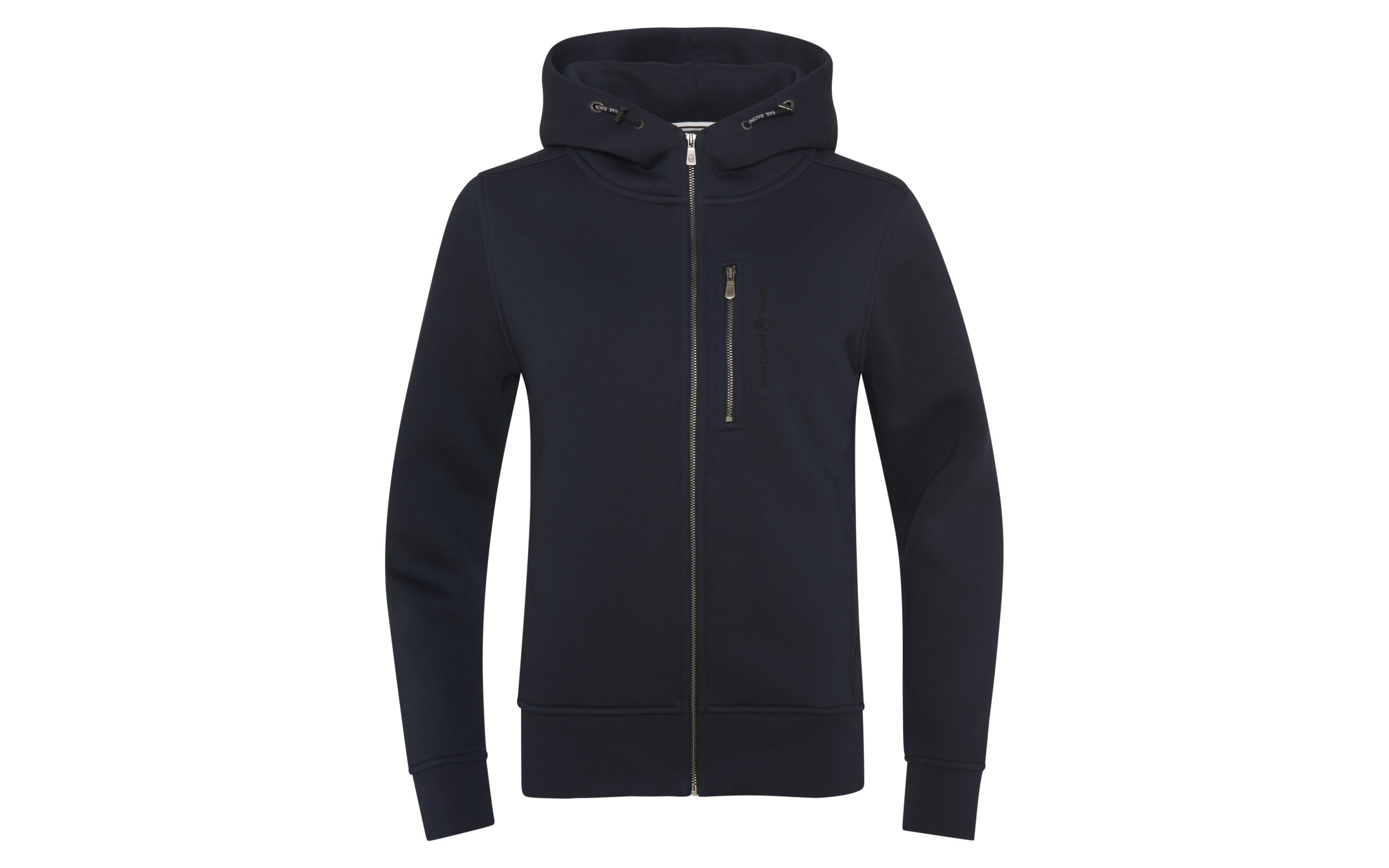 Women’s Gale Zip Hood made of a premium cotton and polyester blend. Chest pocket with zipper, open waist pockets and an adjustable hood. Ribbed cuffs on the sleeve ends and bottom hem. Sail Racing embroidery logo on the chest and a bloc logo on the top of the hood.